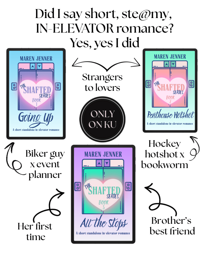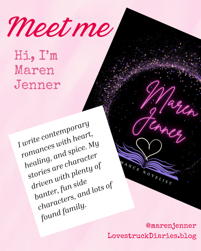 Hi I’m Maren Jenner! I write contemporary romances with heart, healing, and spice. My stories are character driven with plenty of banter, fun side characters, and lots of found family. I have three series out — The completed Sweet Nothings Trilogy which are single POV stories told in first person. Each book follows a different couple in the friend group to their HEA with the couple from book one connecting the stories. Wrighting the Wrongs has 3 of 4 books out. The fourth comes out Oct, 2026. These are interconnected standalones following four brothers to their HEAs. Told in first person, dual pov. And the final series is the Shafted series. These are short, steamy, in-elevator romances and are standalones connected only by location so can be read in any order. Trigger warnings for all of my books can be found here – https://www.marenjennerbooks.com/trigger-warnings/
